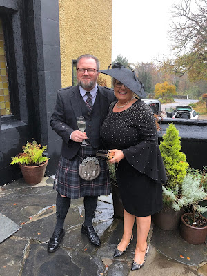 At the end of our trip the beautiful bride and handsome groom tied the knot next to the Spey and he piped her down the aisle by himself playing Dougie Maclean's wonderful ' Caledonia' which I would much prefer as a national anthem to that dirge Flower of Scotland.