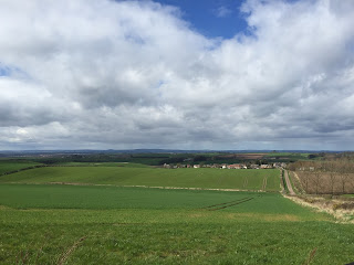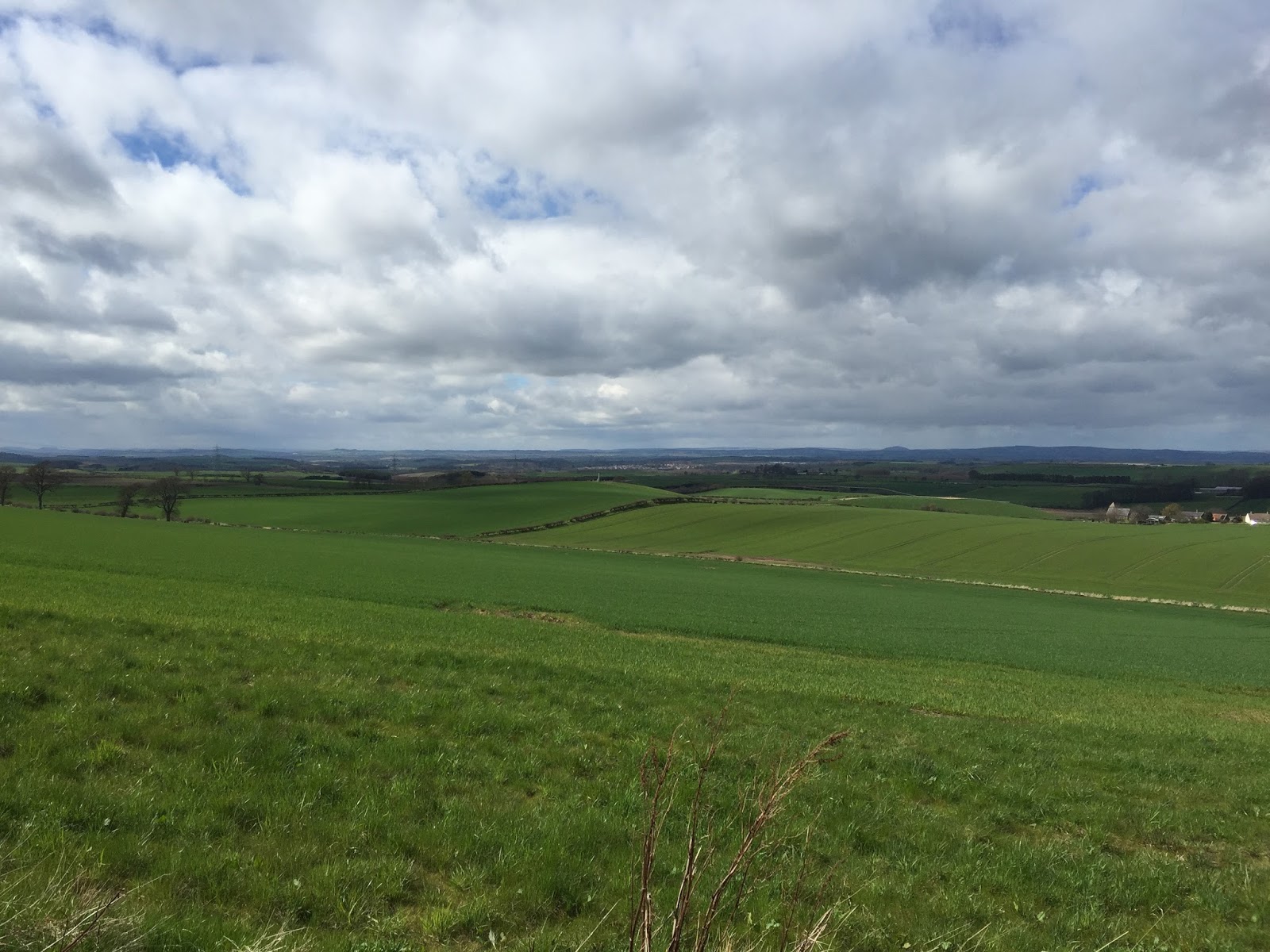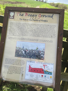 What an opener - The shot below was taken on April 17th 2016 on the forward (north facing) slope of Branxton Hill, Northumberland and it looks towards the positions occupied by Sir Edmund Howard's men on the rise above the display board. Beyond that hill is the River Tweed and the full panorama in the distance is the Kingdom of Scotland. On September 9th 1513 the nobility of Scotland perished in drove at this very spot.