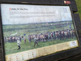 On reaching 'soggy bottom' the now drained bog, invisible to the Scots until they walked into it, Toggy and I appreciated the dilemma which faced the massed pike blocks. Wet, muddy, disordered, stuck in bog and being pressed from behind by thousands of their comrades, cohesion was lost. The English billmen on a significant rise to their front would have goaded them with missiles, cannon fire and insults. The few who struggled out of the bog with their long pikes were easy prey to the more agile billmen who cut them down.