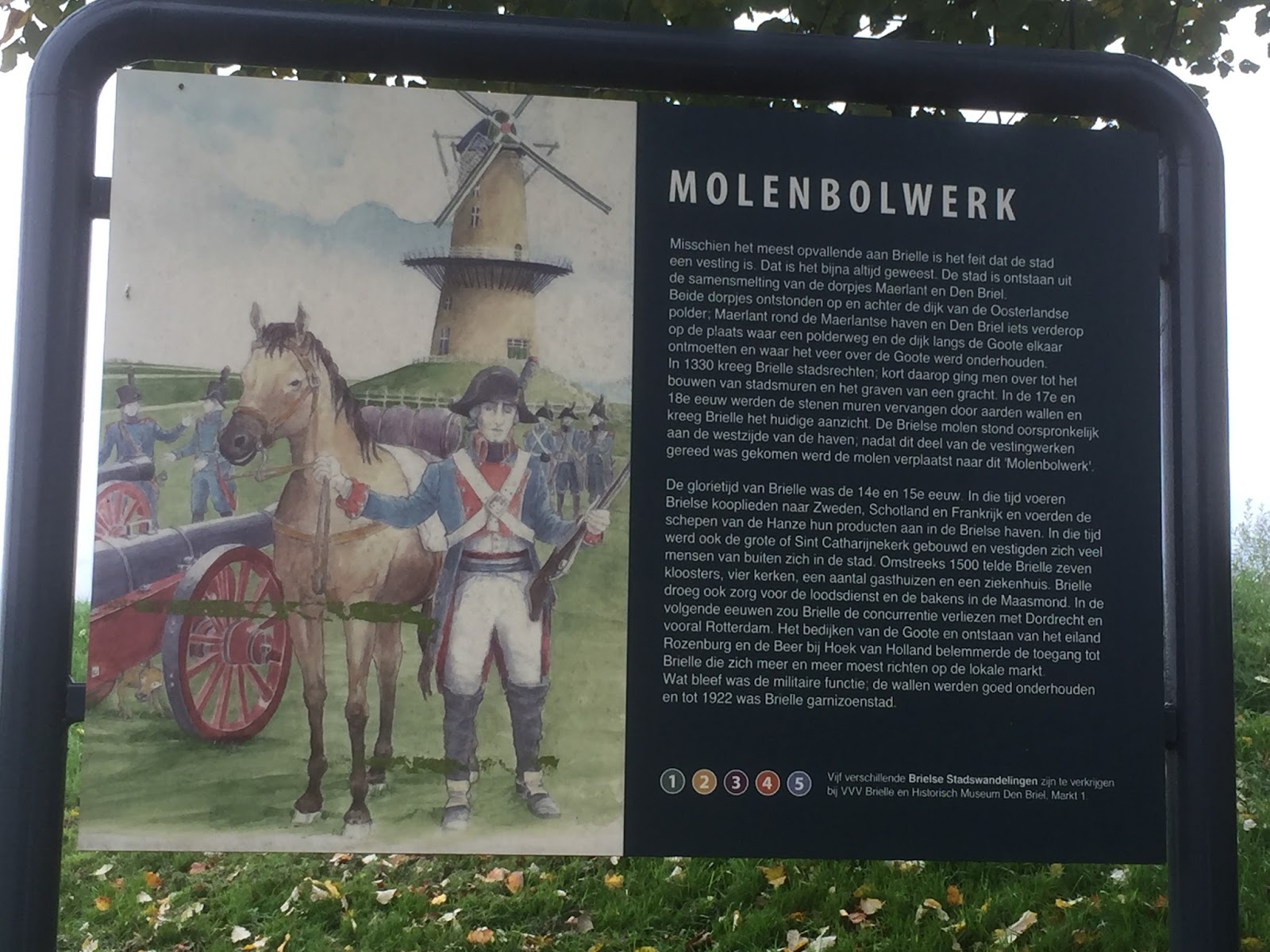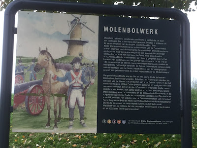 We walked some of the outstanding defence works and spent time at the Molenbolwerk (Mill bulwark) which is one of the numerous intact bastions with interesting display boards (unfortunately I do not speak Dutch but they were visually informative). Holland's own Menno van Coehoorn (he of mortar fame) was responsible for the upgrading of the Brielle fortifications during the period which is the core focus of this blog.