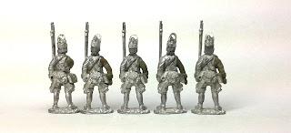 As if this is not enough, Clib has worked up the first iteration of Swedish grenadiers. The headgear chosen is not that used on the test sculpt of 18 months ago but the more common tall mitre.