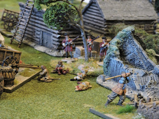 Bob's escapees neglected to pick up the various weapons lying around in the camp and choose to bolt for the bogs or fight their captors with bare hands. The result was 12 rounds of slaughter and me running out of casualty models - I had painted a huge wadge of those too!