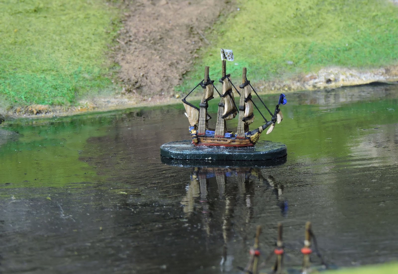 If Portsmouth becomes immobilized sailing directly into the wind she will use her oars to continue at a speed of 3 inches per move. I introduced a randomized Ability level for the commanders to provide positive/neutral/negative modifiers to the initiative role. The French captain gained a Skilful rating so added +1 to his initiative roll each turn. The senior English captain - Tripp got a Competent rating providing no modifier.