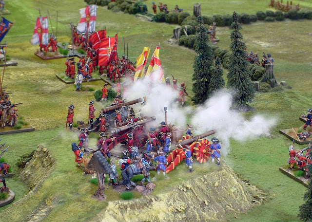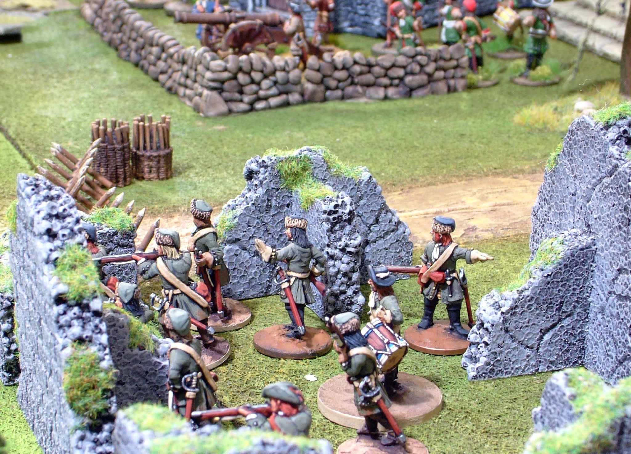 In one of our refights I remember the Jacobites were well on the way to a famous and resounding victory when a chance shot hit a unit to which General St Ruhe was attached and.. yes, you guessed it, the controlling player Paul, beat the odds by having the commander killed. This sparked a widespread panicky rout and the battle literally turned on that die throw. Slaw jaws is an inadequate phrase to describe our responses.