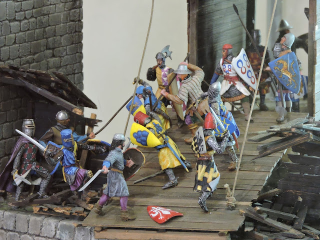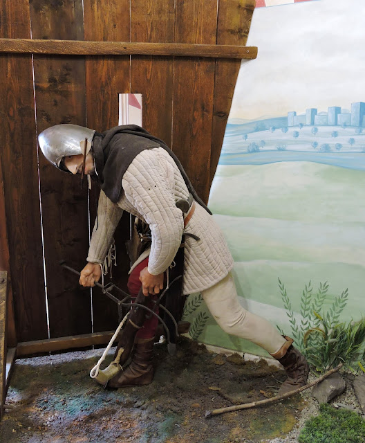 Great journey through the development of dress, armour and weapons. Great model making skills - well up there in the diorama stakes. Nice hands on experience for dresser-uppers like Bob, Clarence and Dave - try on the plate and chain mail, helmets, wield the war clubs, pole arms, double handed swords, maces, hold a shield, get your picture taken as a medieval minion etc.