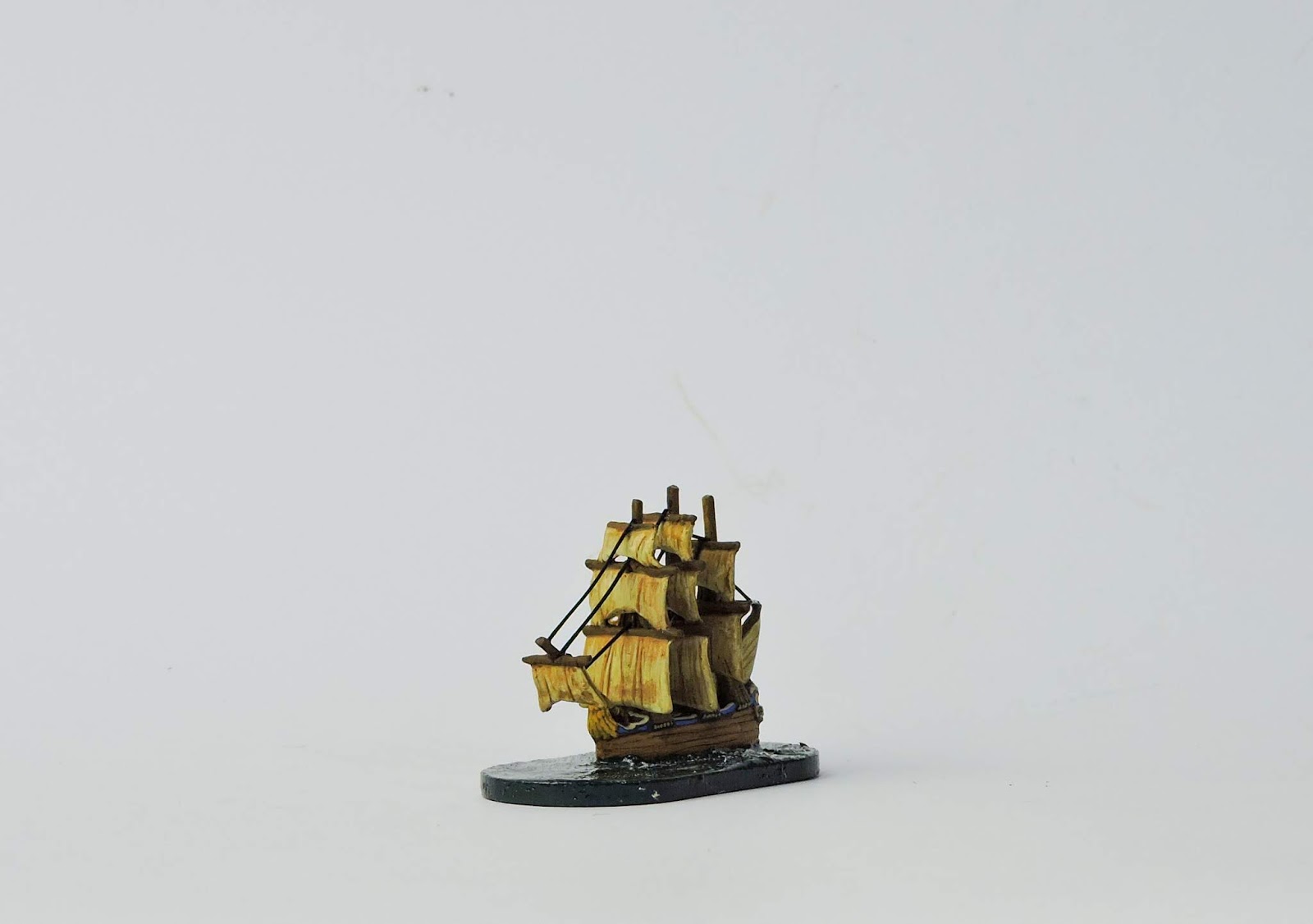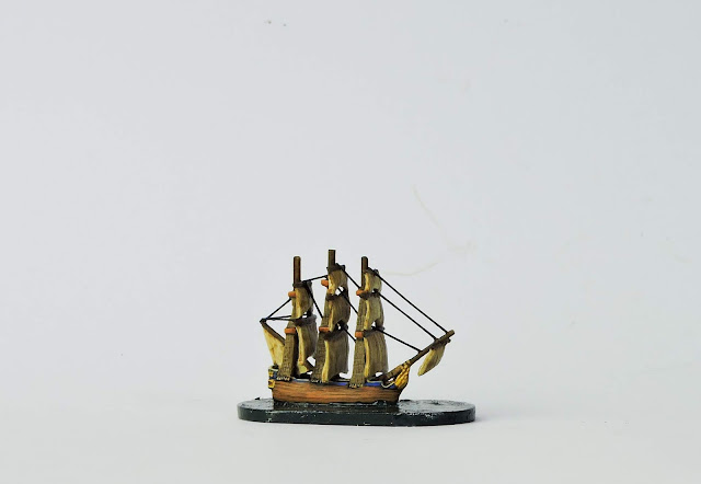 Next up was fun to do - a large Fluyt or merchantman. You will notice the lack of gun ports and the fact that this model has full sail and a different bowsprit to a man o' war.