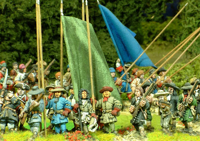 Captain Sandy's Volunteers: An regiment of 12 models formed from army deserters, mercenaries and volunteers. Formed as All musket ie carrying no pikes. Graded as Drilled.