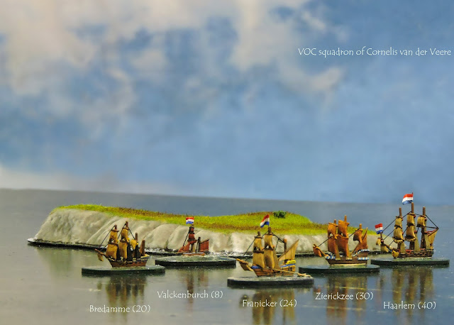Haarlem 40 guns (van der Veere), Zierickzee 30 guns, Franicker 24 guns, Bredamme 20 guns, Valckenburch 8 guns.