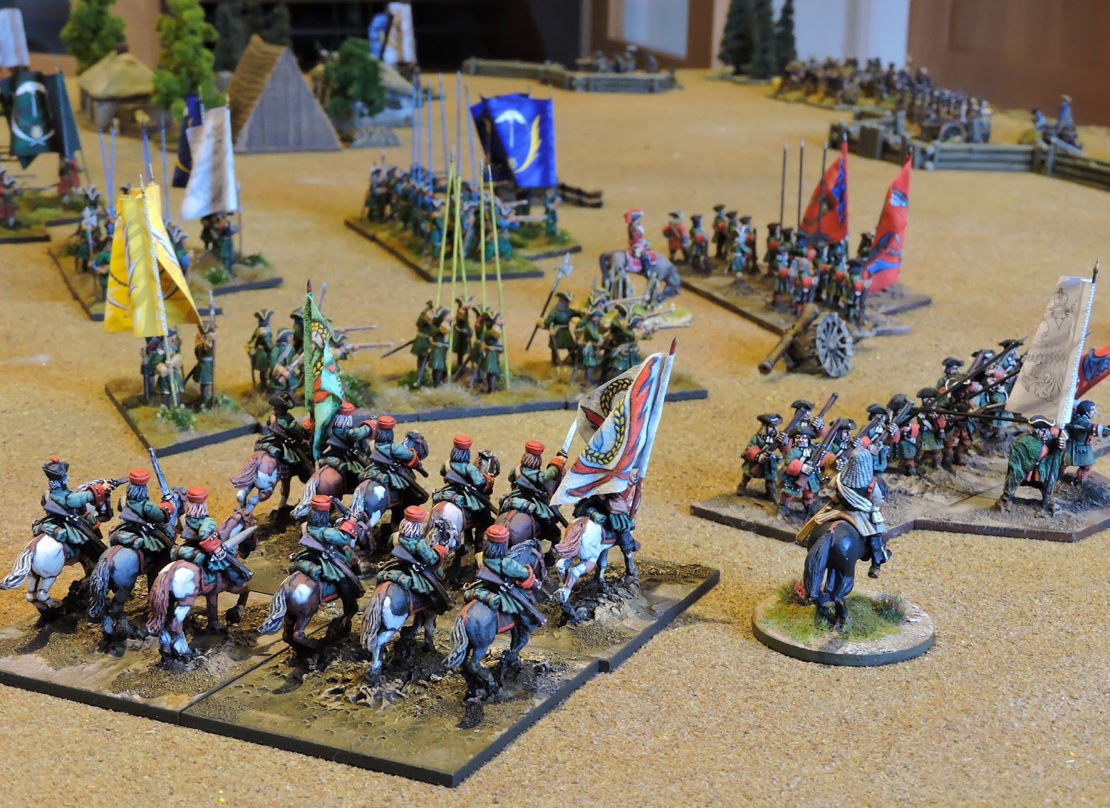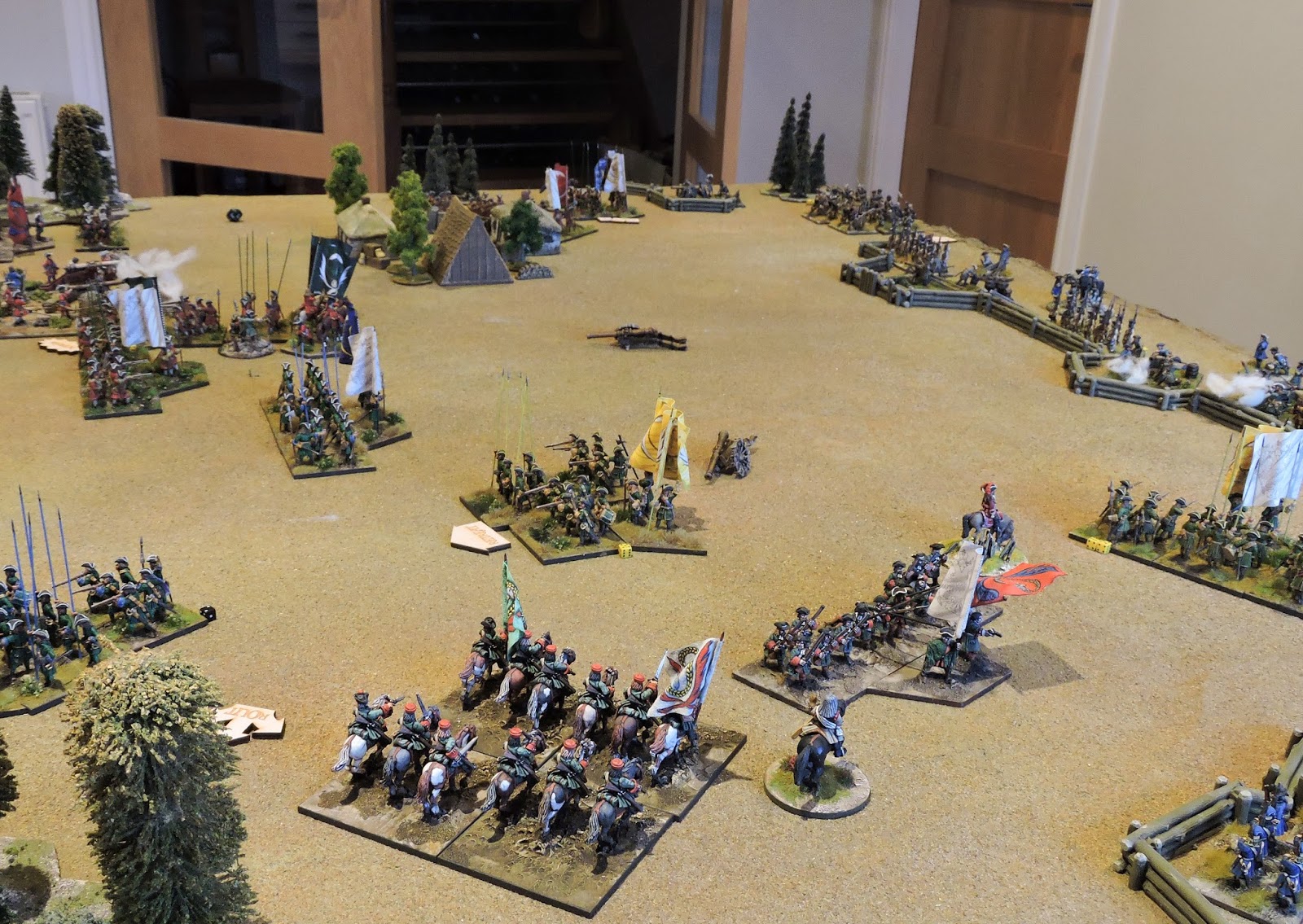 Another shot of the Russian right with some venerable Dragoons painted 20 years ago. |