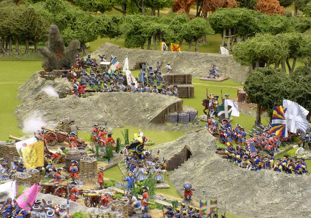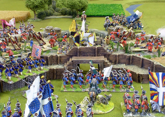 Gardes Francaises and Gardes Suisses in action in a large Malplaquet 1709 scenario |