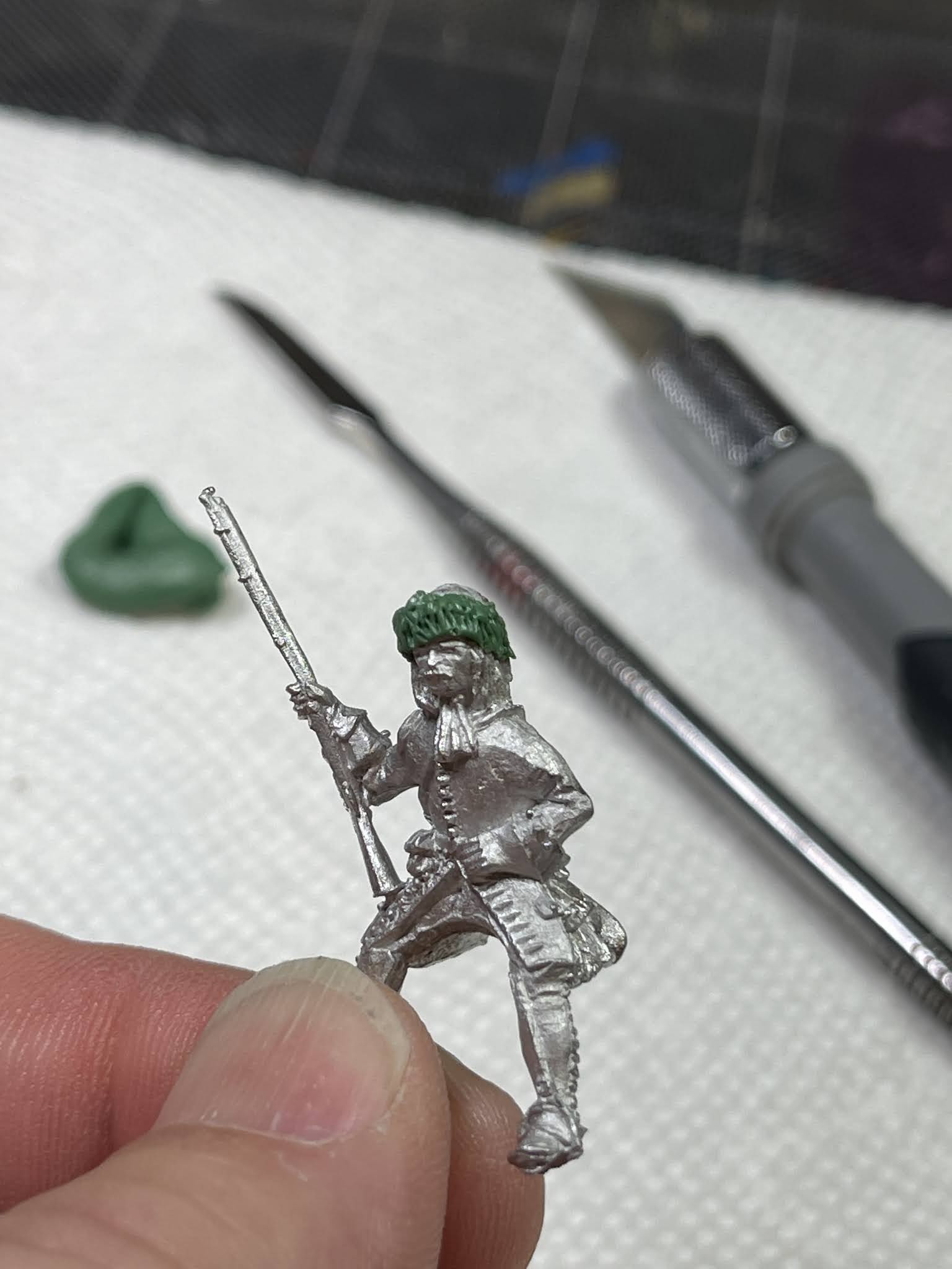 Only twelve? Well, yes... I'm mixing in a few models in hats. The officers likely wore hats and I've seen several other representations of this regiment (including Barry's) drop in a few among the rank and file. I think it adds the look of a hard as nails regiment on campaign.
