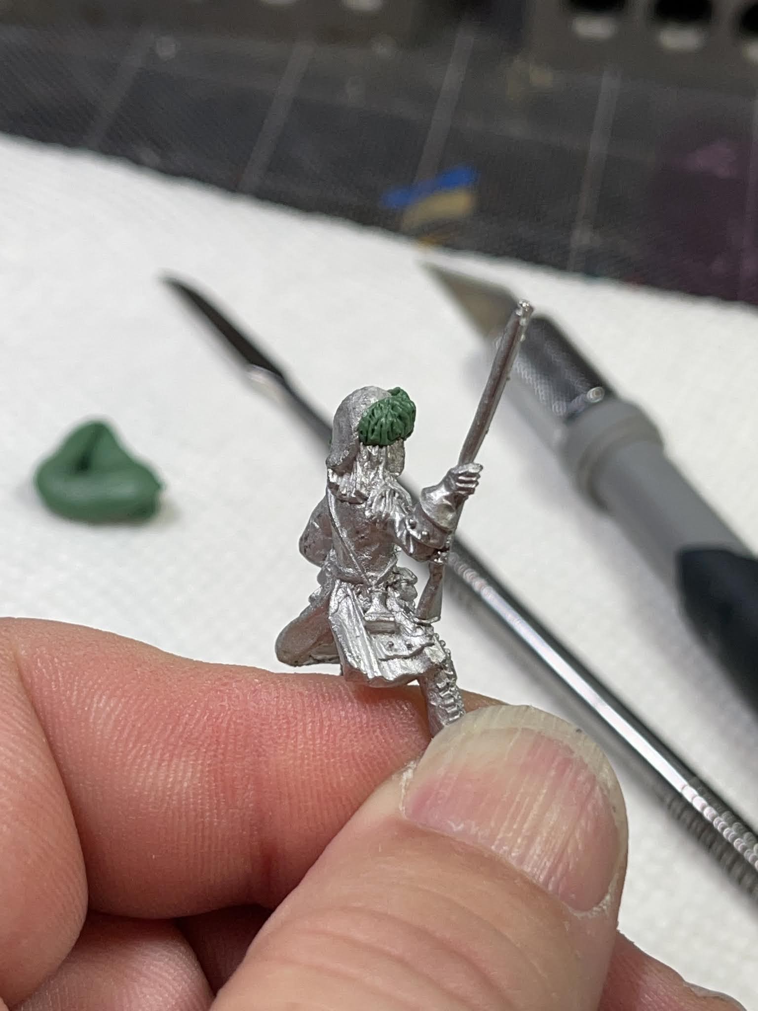 But I've been waiting for these mounted, fur-capped gentlemen forever, despite my whining (Argh! Fur-capped Austrians? Why do we hate the French?). Warfare Miniatures does have a set of splendid Mounted French Dragoons in caps, so the other day I decided to stop being lazy and make my own. I'm not an accomplished sculptor, but have enough confidence in my skill to add a fur texture to the existing bases of the caps. Each became successively easier once I'd gotten the hang of it. All it took was adding a tiny sausage of putty (no, that's too much... nope still too much... even less than that) around the cap, shaping it with my only actual sculpting tool, and then working in the texture with an X-acto blade. In about an hour, I was able to tart up twelve troopers. Huzzah!