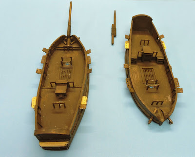 I have quite a few issues with this model as a basic raw material. The positioning of the cabin windows at the stern is so low that you have got to hope than it never gets into the open sea but, nevertheless, I can work with it. The casting is not very good either. An overhead view demonstrates that it is not symmetrical and has a distinct inward dent or 'squash' on one side. We'll get away with that though. I decided to treat these raw hulls as a blank canvas and see what I could do with them.