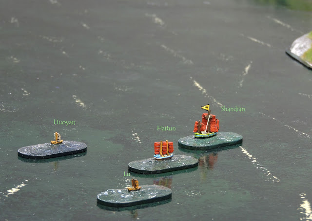 The under-gunned junks were unable to do much damage despite finding their mark during turns 5 and 6. An attempt to board by Hăitún was easily brushed off. Treachery was suspected as Warlord Po's flagship disengaged during turn 6 sailing off from the battle having neither fired nor attacked. His squadron failed its check which caused the withdrawal.