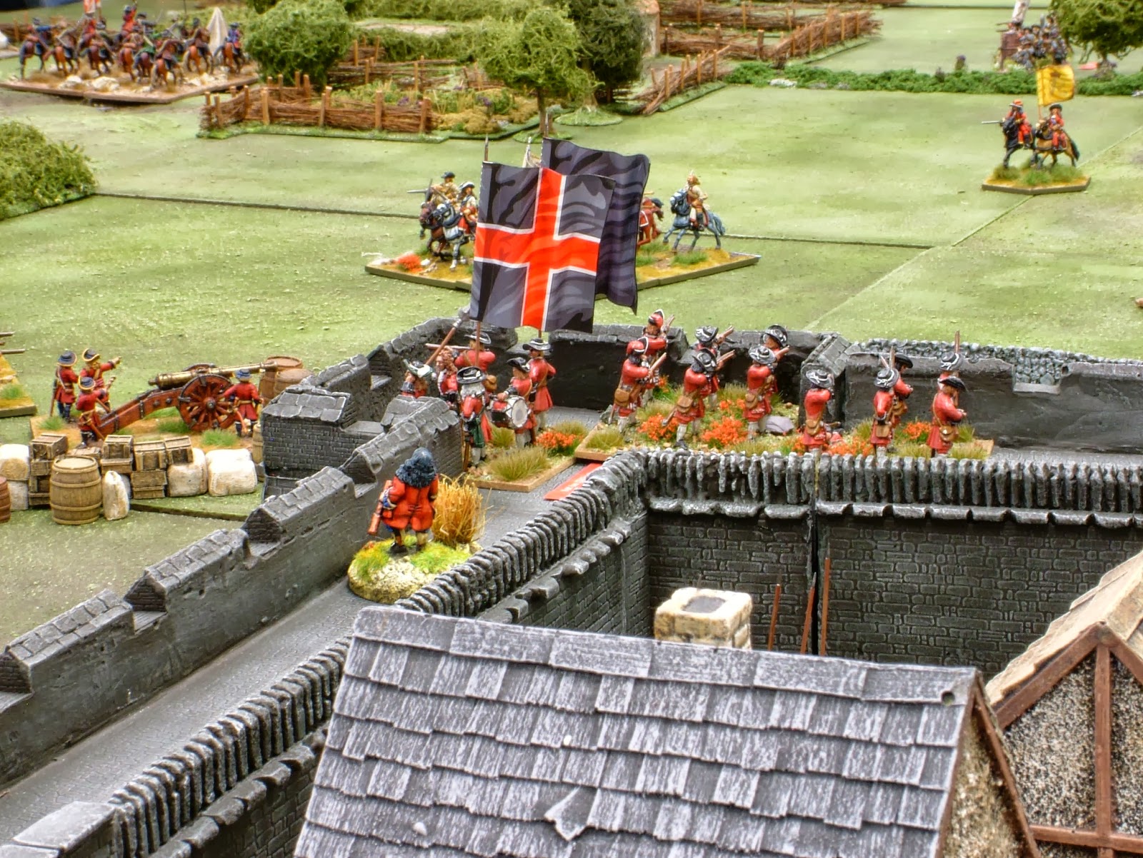 The objective for the Jacobites is to sweep through the siege lines and relieve the beleaguered defenders of Athlone. The Williamites must form up and defend their position thus repulsing the relief effort. The added dimension comes via the garrison of the city itself. If the Jacobite effort was perceived(by the umpire) as being successful enough, the garrison would sally forth and pile more pressure on the Williamites!