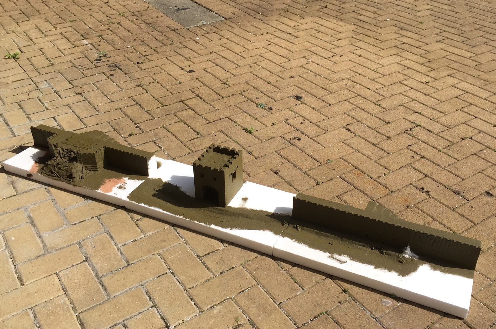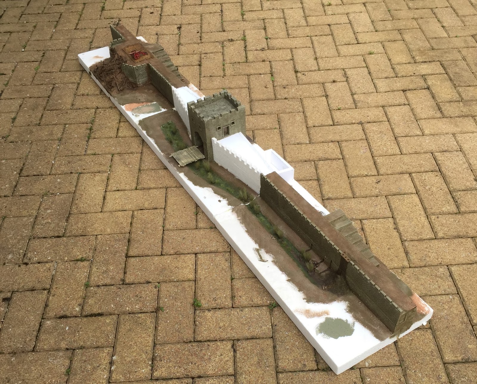 In event, my four foot length turned into a six foot length which in turn went from a simple stretch of wall with a gate to six feet with water filled ditch, ruined bastion and various interesting buildings built along the internal perimeter.