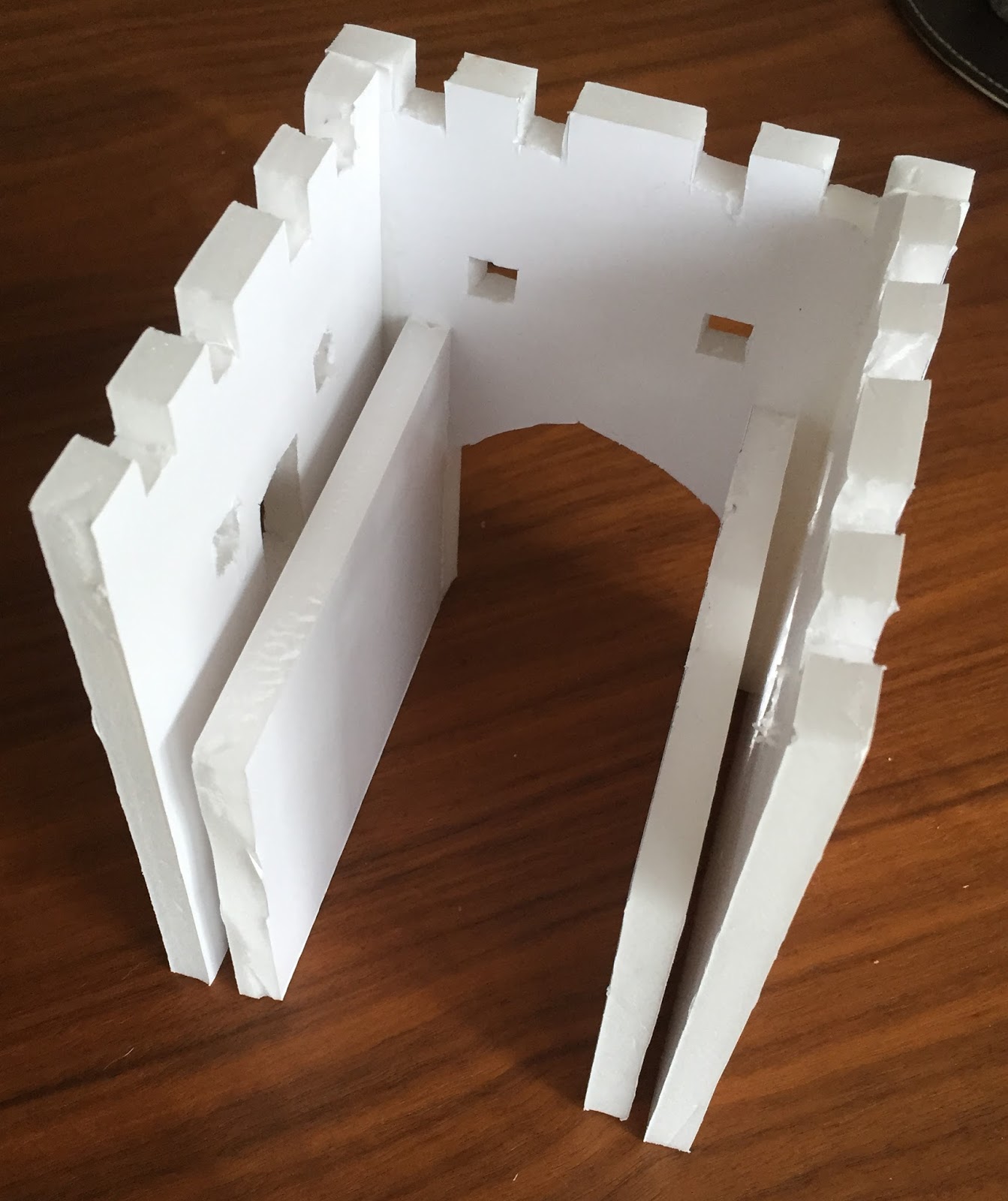 I quickly began to realize that the biggest challenge would be a vaulted tunnel connecting the two arches.I needn't have worried. It is possible to have a flat ceiling as it is largely out of view.This is created by putting a middle floor in the tower.