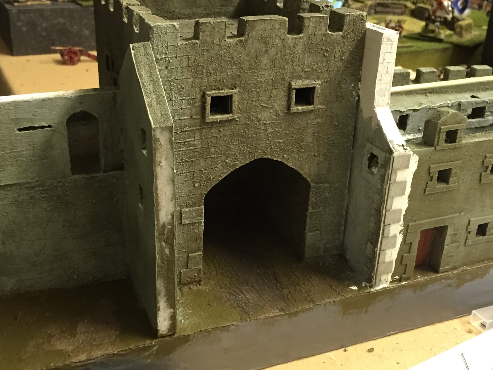 Many fine details still have to be added such as the drawbridge and the inner gates but painting at this stage was a very good idea.