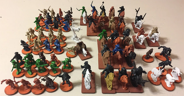 Rewind to the beginning of the project: Last summer, I was searching for likely rules to use for a some Gothic Horror gaming and picked up a copy of Donnybrook. These not only looked great for some light Gothic Horror, but also for French and Indian War. FIW has tempted me for decades, but Donnybrook is the first set of rules to actively lure me into buying figures and actually getting started in the period. FIW + Gothic Horror? Why, that leads straight to Sleepy Hollow of course!