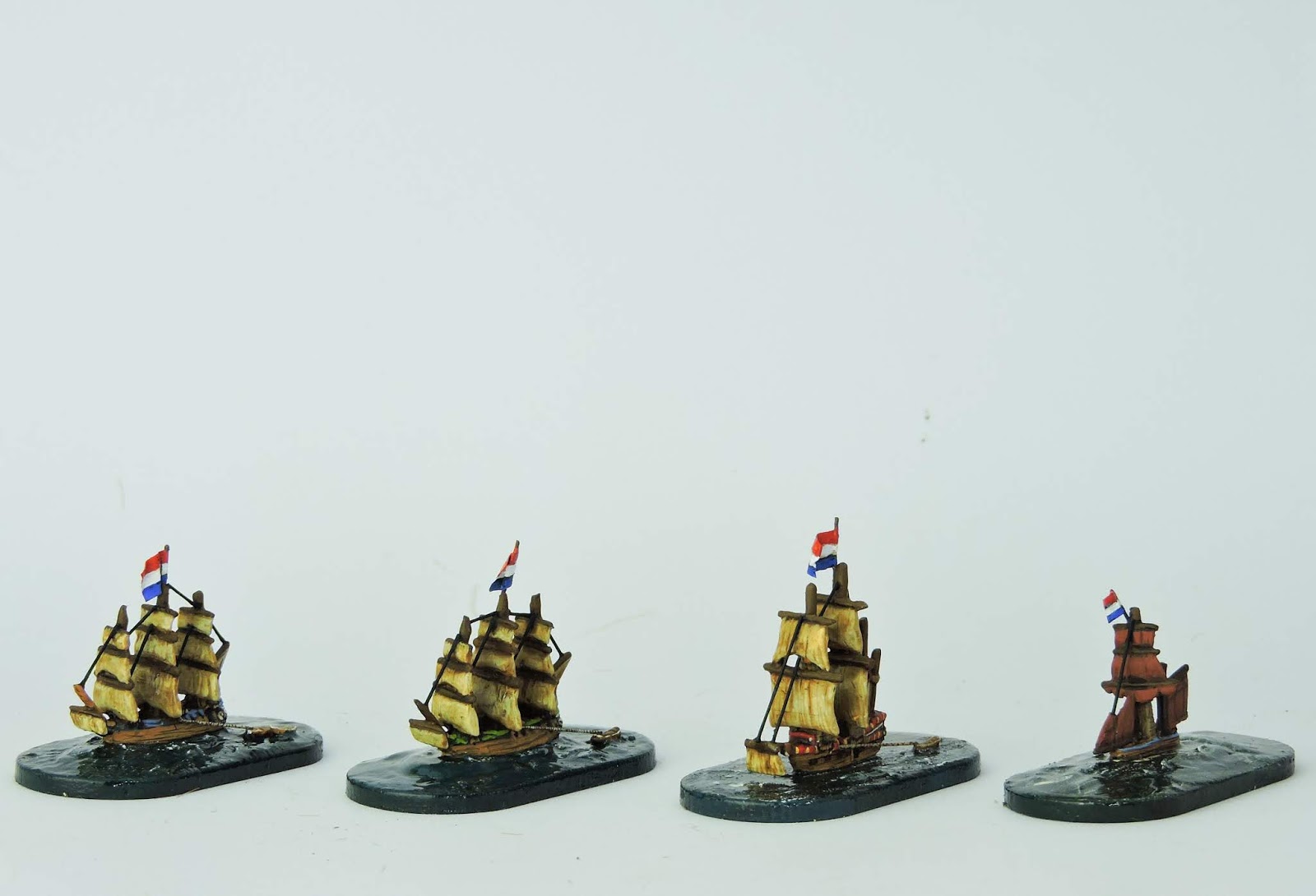 2nd, 3rd, 4th, 5th rates plus Fireship and Heoker - a cross section of my growing Dutch Fleet for the Medway fight of 1667 |