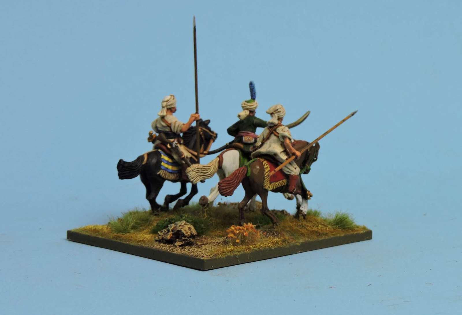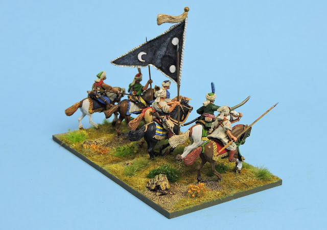 This third squadron of sipahis was built to sit behind the first squadron I posted about two days ago. It has more models with the lance in the upright position.