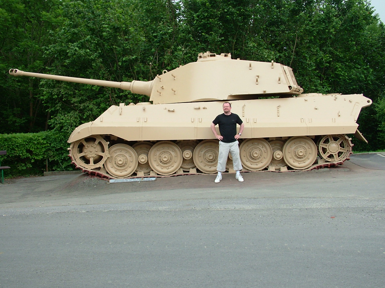 Whether an apocryphal tale or no, we were informed that following the end of the Battle of the Bulge American engineers could not get this beast on the back of a low loader truck. It had run out of fuel during the final battle. The local Mayor offered to buy it from the Americans who sold it for a bottle of brandy! Great story. Last time I saw it it had a different paint job.