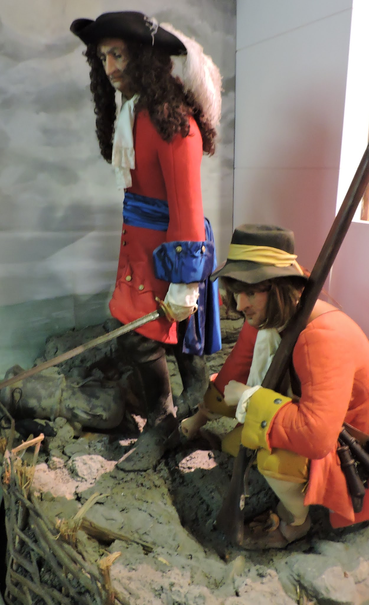 Coincidental with this act, a pretender to the throne had invaded England and caused Kings James II to flee. He was the King's son in law/nephew. Willem van Oranje. He was a Dutchman although half-Stuart (through his mother (the King's sister) and through marriage to his cousin, the King's daughter, Princess Mary. His main reason for the coup? He needed English money, soldiers, ships and power to stave off the conquest of his own country by the all-powerful French monarch Louis Quatorze (XIV) - Le Roi Soleil.
