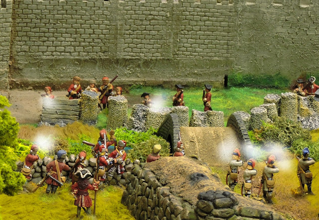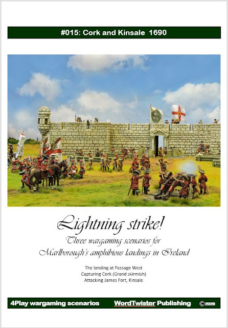 The third scenario allowed the legitimate use of a terrain piece I bought in Antwerp a couple of years back. The attack on James fort at Kinsale was yet another of those incidents which could have gone either way. The Jacobite commander there - Colonel Edward Scott, had done a lot of hard campaigning. It was he who was left to face down Lloyd's Enniskilleners at Belturbet (another scenario coming up for release) and it appears he may well have escaped this one to fight again at Aughrim.