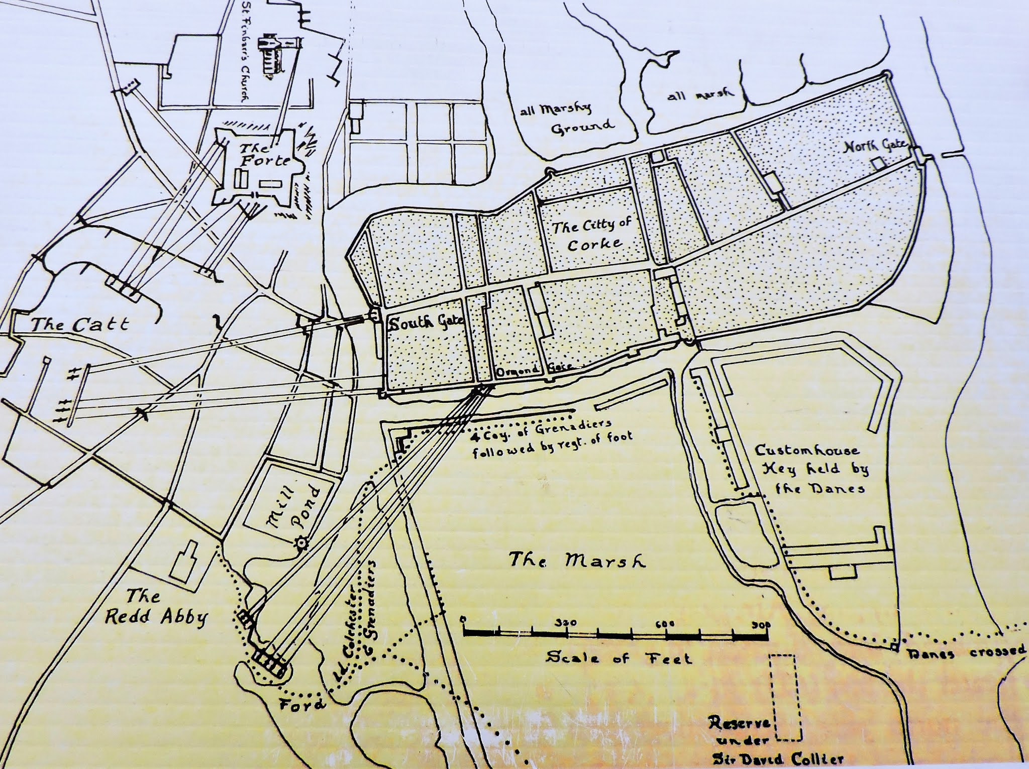 The garrison of Cork and its commander Roger McElligot should not be considered in the same way the 'Empire' is seen in Star Wars movies - amorphous canon fodder to be blasted by the Williamite heroes. This was a seasoned and experienced officer who had seen extensive active service in Europe commanding troops who were probably of better quality that the run of the mill Jacobite regiment.