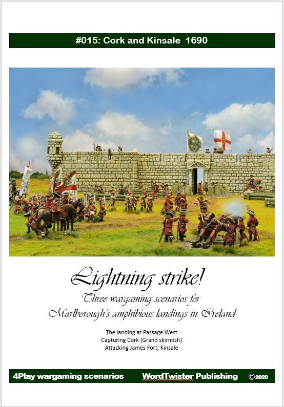 The first game is a traditional 'landing'. A mini, D-Day, Camaret Bay or Iwo Jima. Odd comparisons? Not really. Any amphibious assault is a risk and at Passage West, Marlborough's infantry could not really have known whether the Jacobites would offer stiff resistance before committting to the landing. The Jacobite forces are conjectural but my research has put all of the stated units in Cork around the time of the siege.