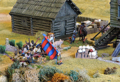 Wheels within wheels it would seem. The attack began well with the raiders quickly setting each location ablaze (accumulation of score of 15 on 1 x d6 per turn for each). When the French arrived they set about the defence with gusto.