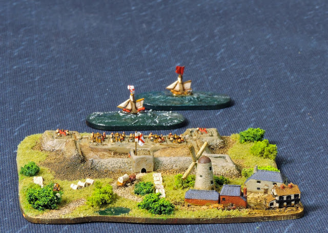 I finally got a chance to build Sheerness today. It's not often you get to type that! Took about 90 minutes to finish the first major piece of terrain for the 1/2400 part of the Tocht naar Chatham (Medway Raid 1667) project.