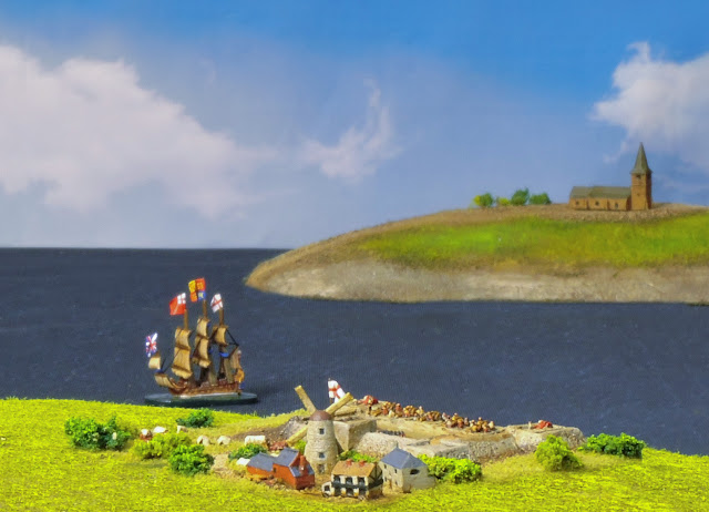 I had not real game plan to fit the civilian dwellings and just used the most appropriate for size and look. I managed a couple of setting mock ups just to get a feel for how it will fit when I finally build the custom terrain. I will probably give the fort the firepower of a 4th or 5th rate ship with an as yet to be decided defensive value.