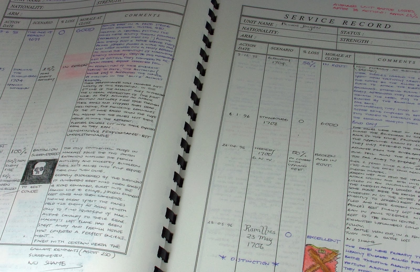 The double page shot above is also from the records of Prinds Jorgen. They do seem to have been a unit with mixed fortunes. In this selection of actions they have routed twice, retreated once, surrendered once, performed well once and received a distinction at the Battle of Ramillies! In the Ramillies entry they seem to have most unusually, captured an enemy cavalry standard. This was I think, the only instance of Foot taking a cavalry banner in all of my battles and entries. I believe the enemy unit was shot to pieces and wiped out in front of the Danes who advanced, picking up the fallen trophy as they went.