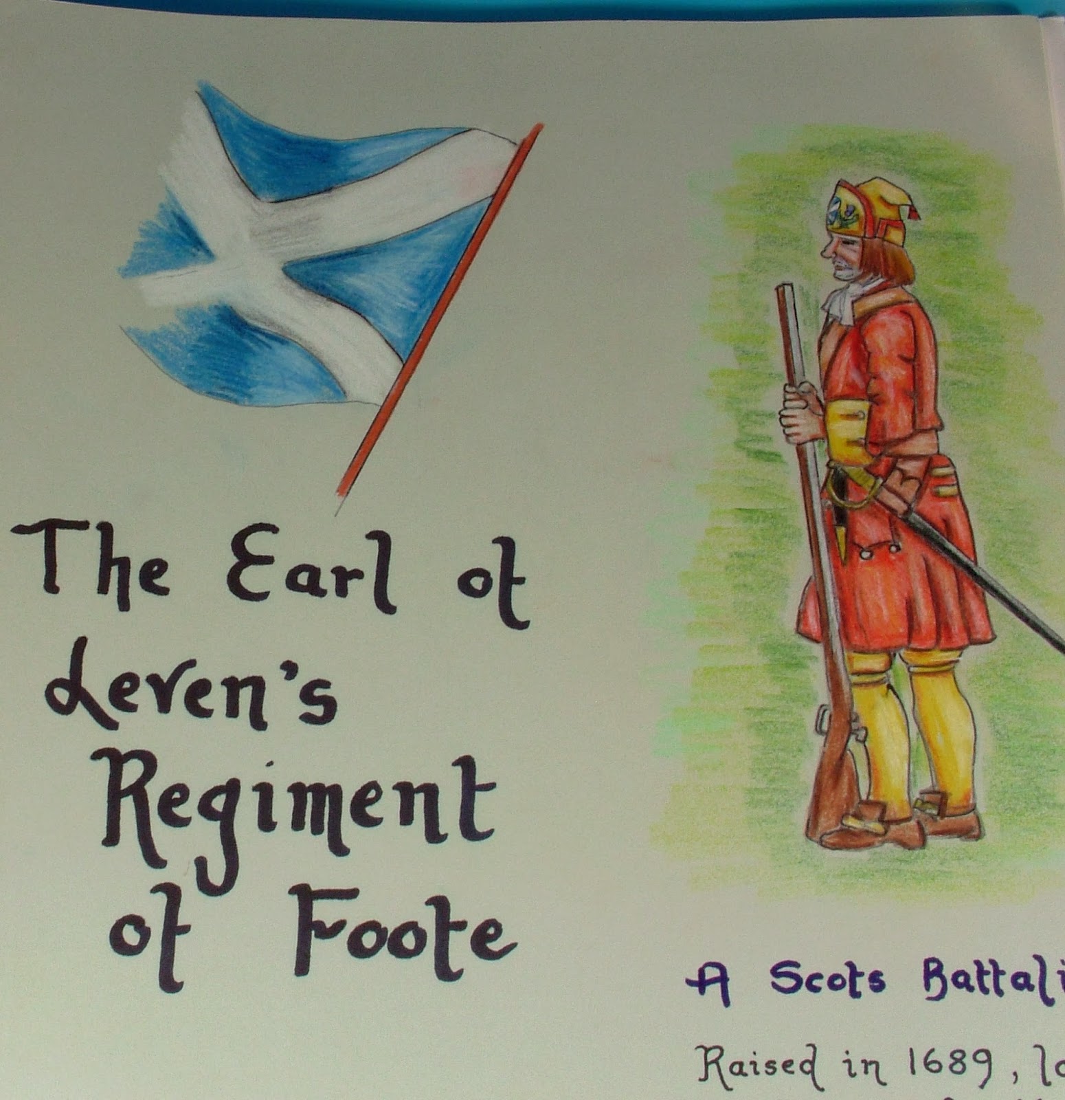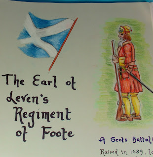 This sketch is the facing page for the records of Dumbarton's Regiment. Known under a variety of titles between 1685 and 1714 the oldest line regiment in the army was on the English establishment and not the Scots. My battalion features elsewhere in the blog but here it is again.