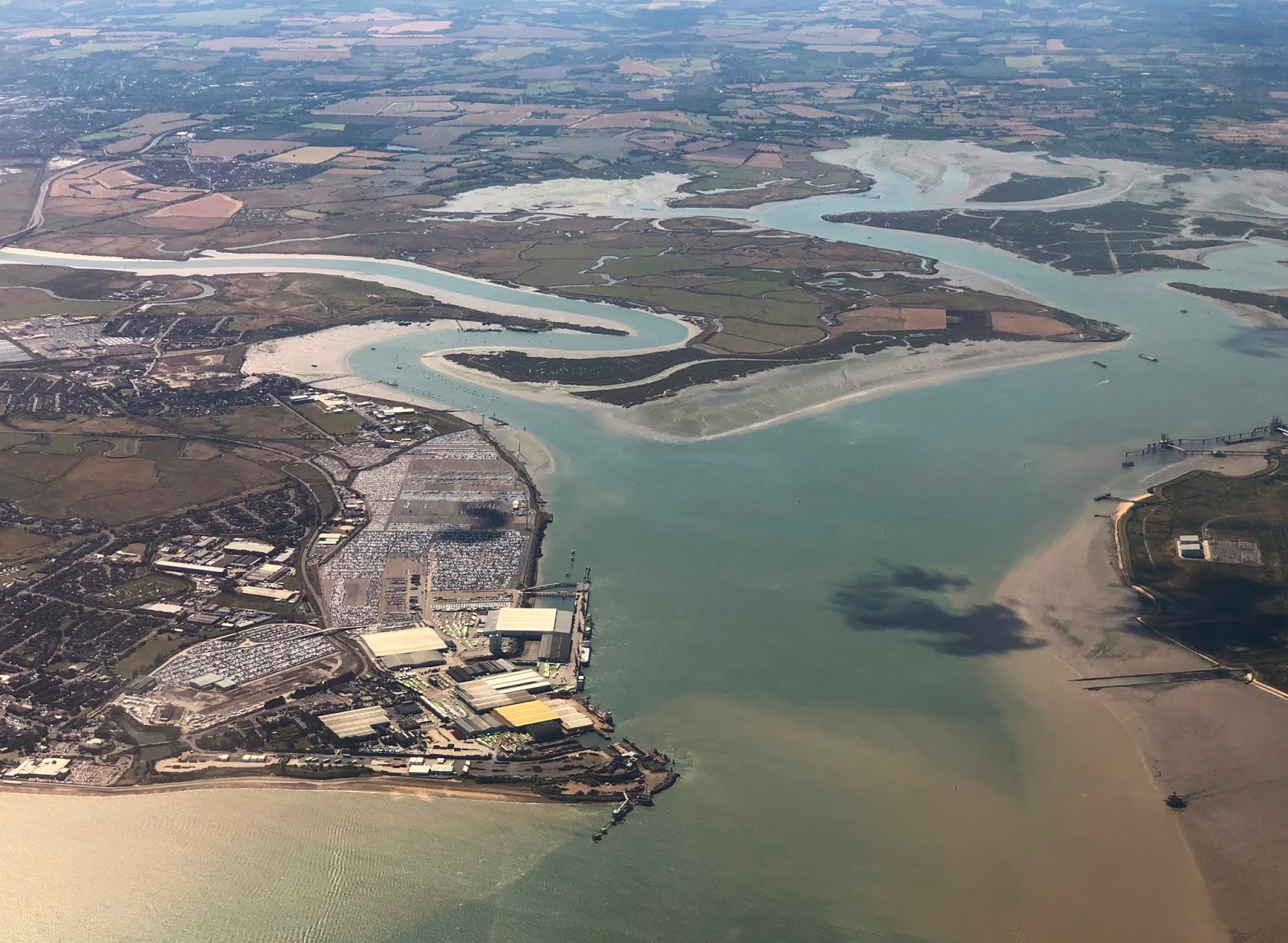 I do a lot of flying. I have been very privileged to see many wonders over the years but some times you just can't believe your luck. On the way back from holiday approaching London City Airport I realized our approach was easterly and the fair weather was providing a marvellous view of the south coast as we came in at about 20,000 feet. I have done this trip countless times and I then thought - we'll go right over Sheppey and..... The Medway Estuary!