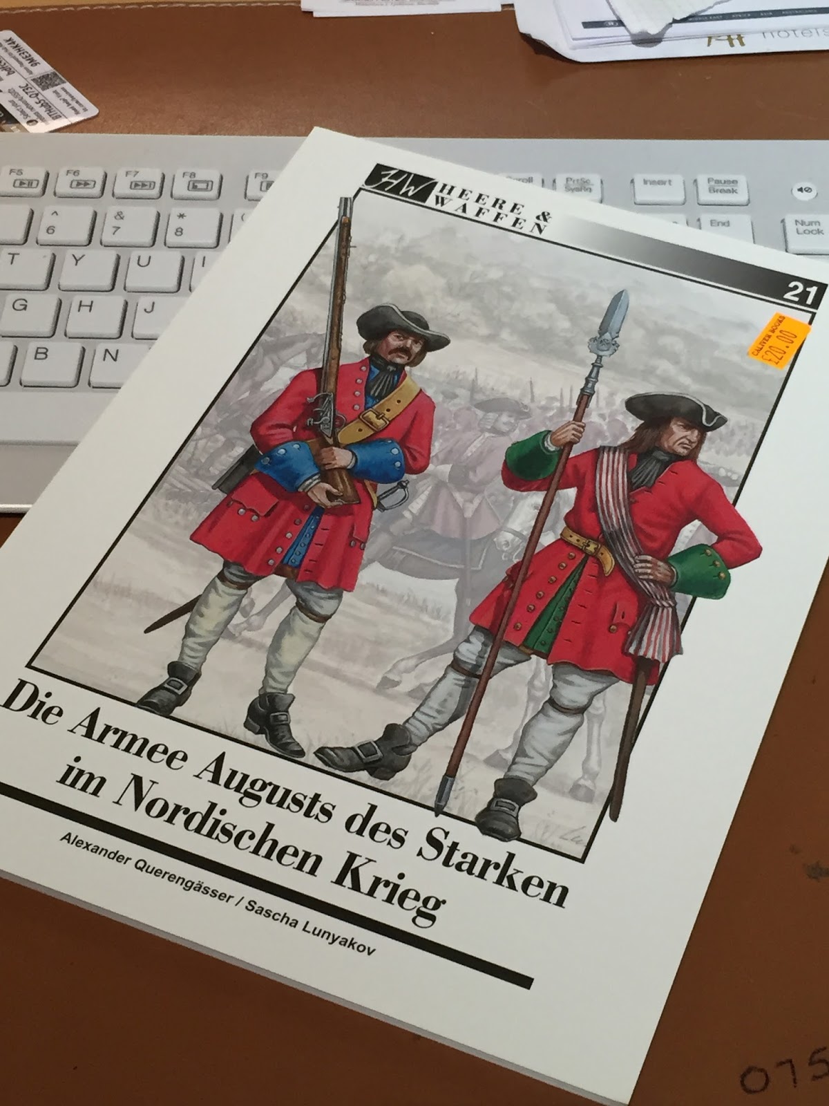 This German language book from the Army and Weapons series is pricey but has some really interesting illustrations. It shows the Saxon army in an extremely wide variety of dress styles substantiating the use of almost any 1680-1720 period wargames figures legitimately.