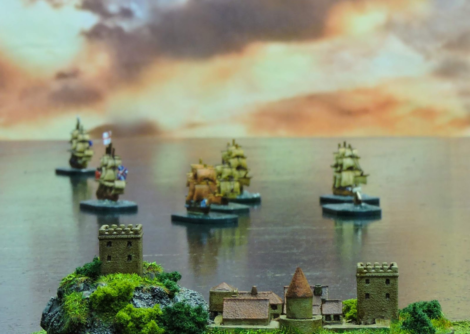 Mock up of the Irish squadron arriving off Duncreige. The game is set for the weekend together with three others.