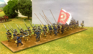 Jim has become very engaged with Warfare Miniatures Great Northern War project and recently sent me some fine pictures of his newly completed unit of the celebrated Upplands Regiment.