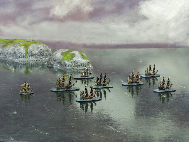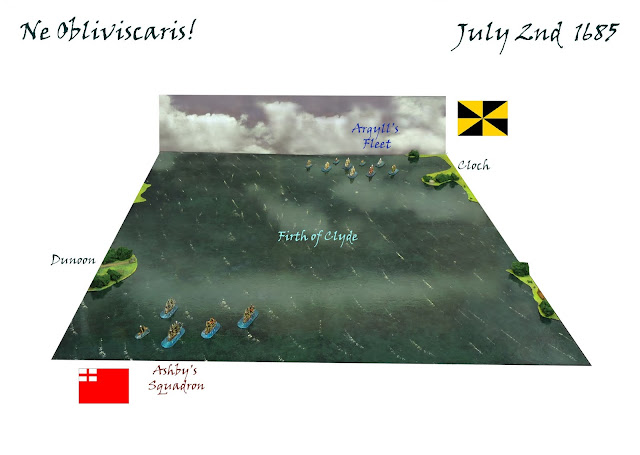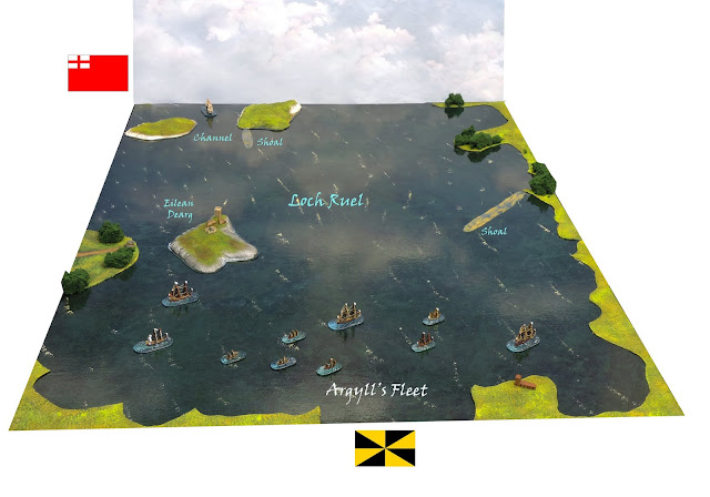 It started with the 4Play pack #17 The Campbell's are coming! which begat the 4Play Mad for War pack #35 Ne Obliviscaris! dealing with the naval aspects of the Argyll Rebellion. Dave and Colin helped play through scenario #2 the historical encounter at Loch Ruel which developed into a full scale action rather than the chaotic abandonment of his ships that Argyll actually presided over.