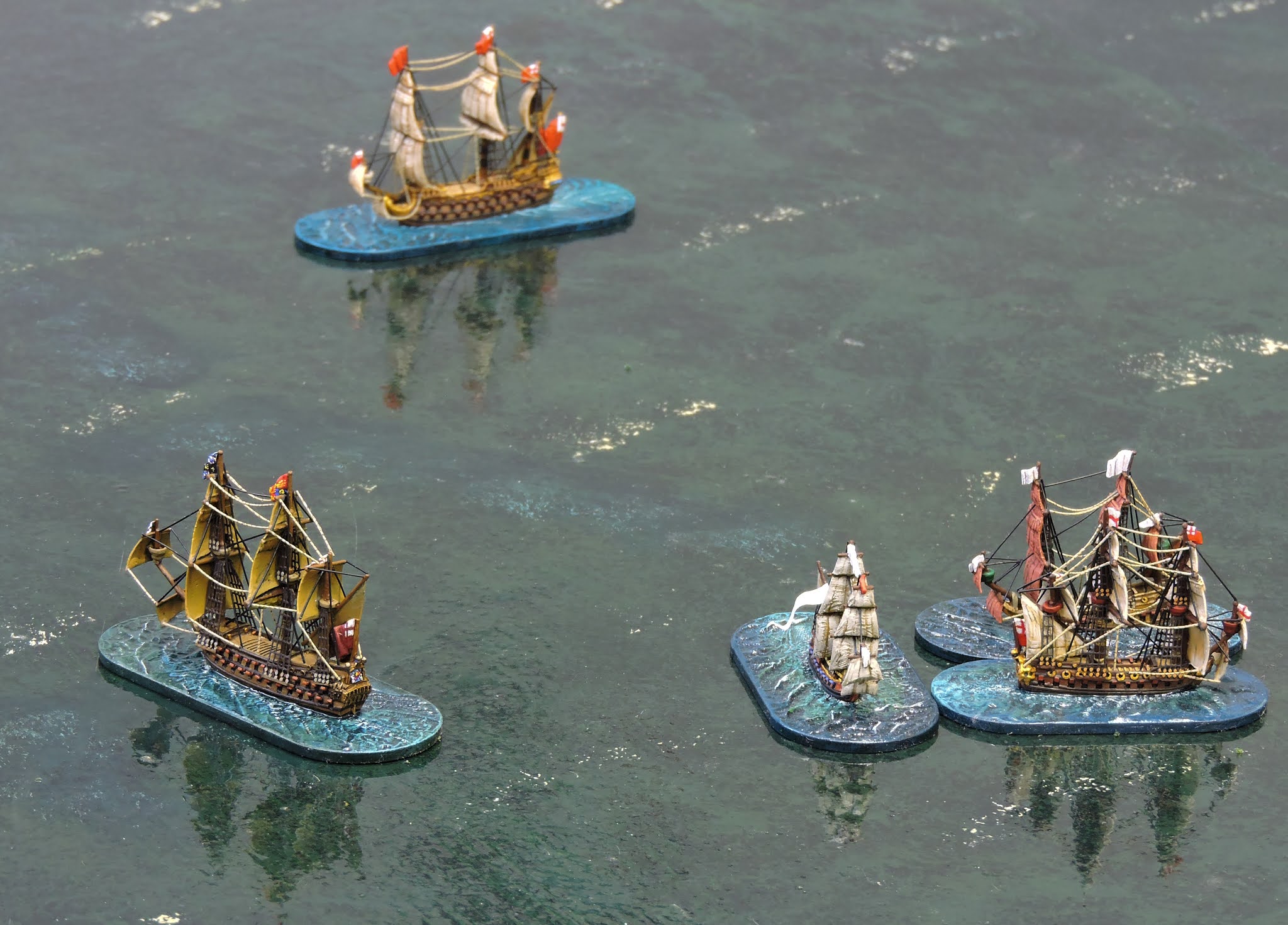 Claymore and Thistle mob and overwhlem the 54 gun Deptford. Captured Warspite (foreground) |