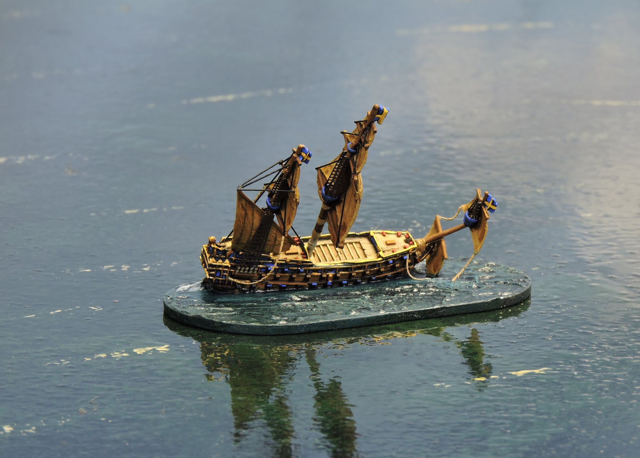 The first is the ship rolling on her side. I agree this is a lot of work for a passive ornament however, when the mood takes you, you have to follow the creative instinct. The second version, already underway, is the ship as normal. It may have a chance to fight in some What if situations.