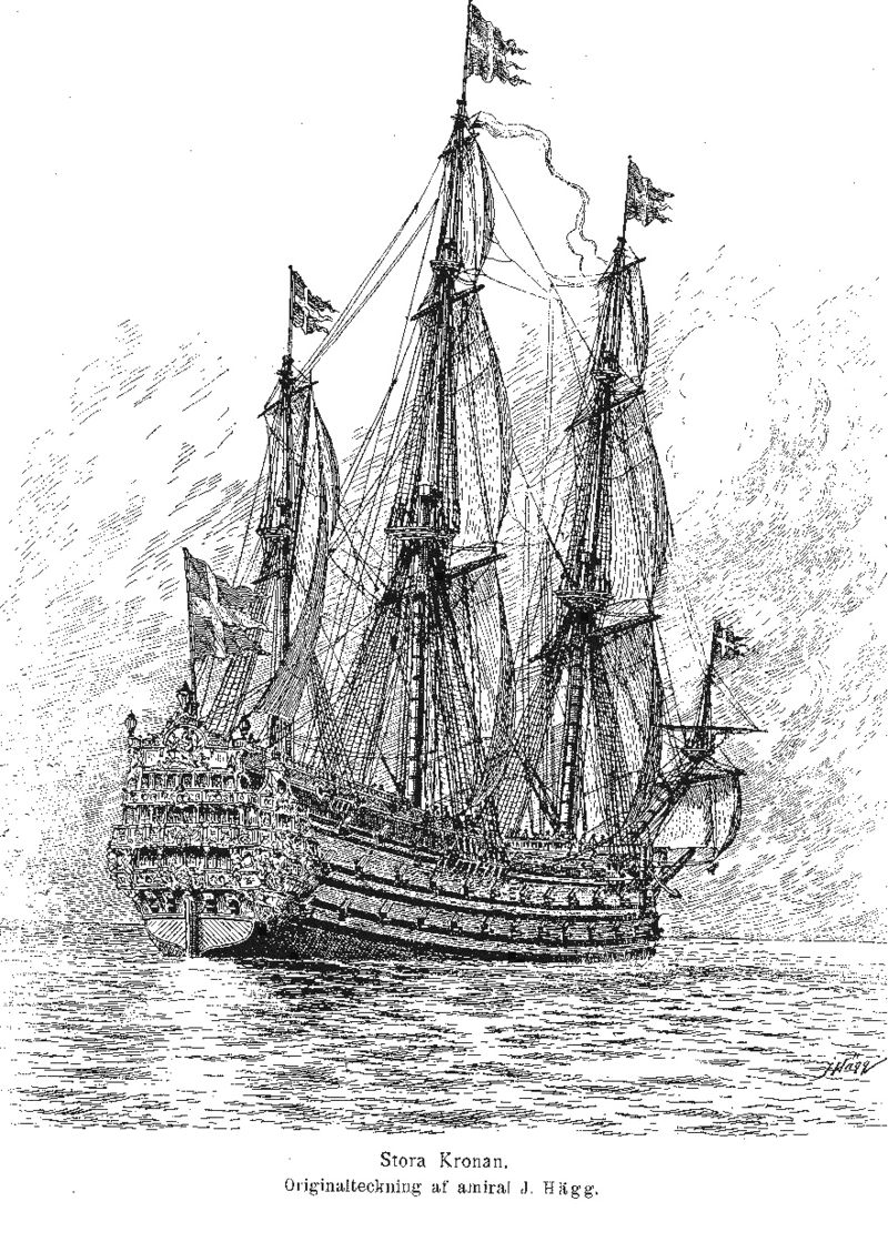 The Swedes were to leeward of the enemy van and as they turned inland in an uncoordinated fashion, their massive flagship the 120 gun Kronan, was caught by the wind and capsized. During this disaster, one of her magazines appears to have ignited and blown her apart in front of the entire assembly of ships. Aboard was the most senior naval officer in the fleet – Admiral Creutz.