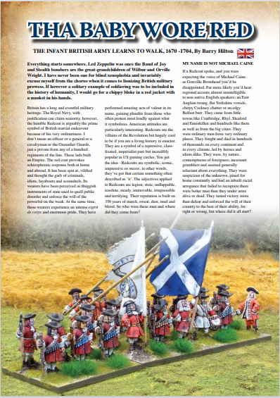 Together with the three scenarios all based on the battle of Walcourt, I have included an extra ten pages of text replaying the article from WI#300 in full. For those interested, it contains the full list of British infantry regiments present at eleven different battles from 1679 to 1704. This pdf weighs in at 32 pages.