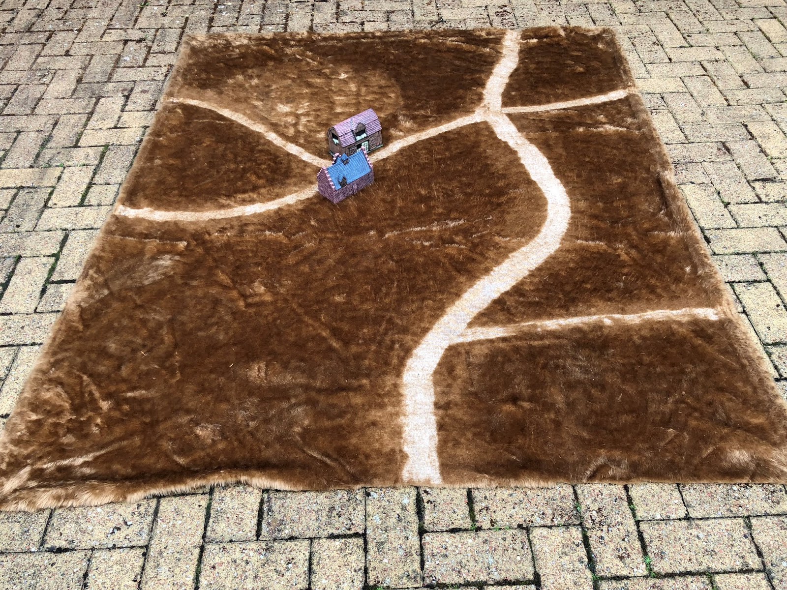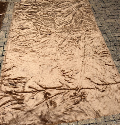 Commencing at 1035 without a clue about what I was going to be doing, I located the faux fur bale in the garage, cut a length of 5' x 6', laid it out under the eaves to avoid the Lanarkshire smirr and scratched my bonce. Having asked Mrs H to purchase a set of combs and a hair trimmer the previous day (which raised an eyebrow), I unmasked my batteries.