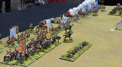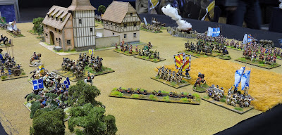 The game feature plenty of dragoons on both side both mounted and dismounted. I had put a little spurt on before the show to get some of these done. Toggy had based up the impressive Gardes Suisses painted by the prolific Rob and we'd done a little re-flagging of utilitarian battalions who could serve in any army.