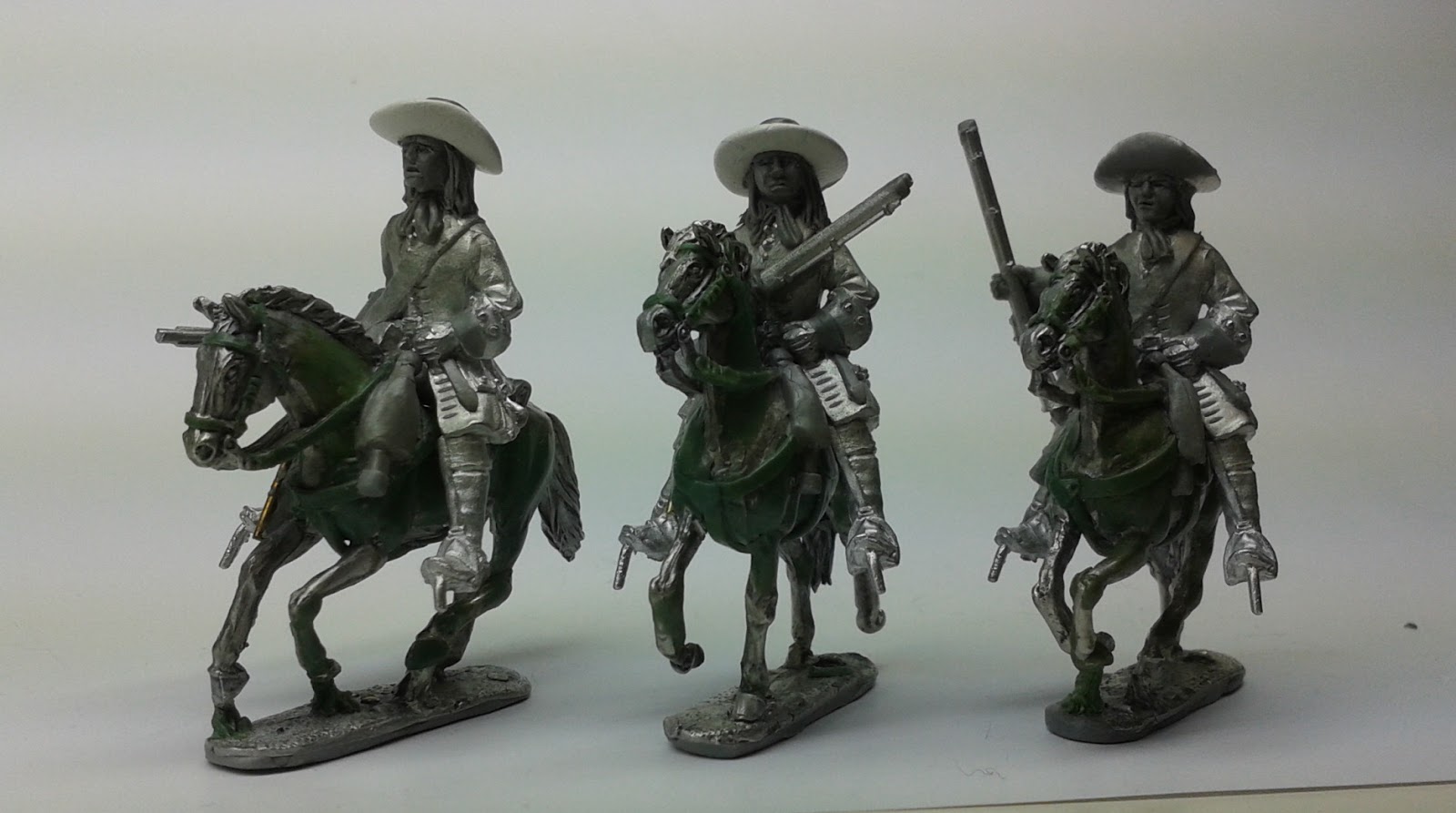 We recognize that they will not be without controversy either but more of that later. These pictures show the French Mounted Command and one set of French Dragoon troopers. We also have hat wearing dragoons who will be useable for a wide variety of nationalities including English, Jacobite Irish, Williamite Irish, Scots, Dutch, German (various States), Saxons and many more. a Command pack and a trooper pack here too.