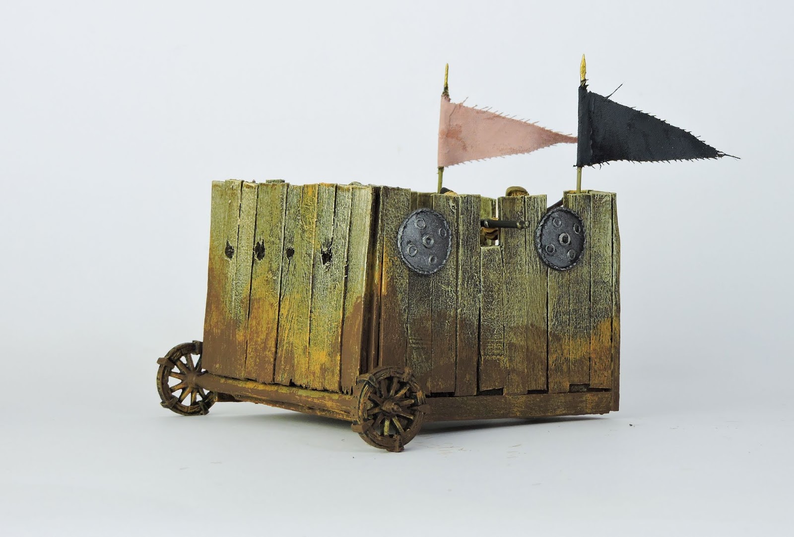 I fancied making a towed, mobile gateway for my wagon burg. The idea it that this feature guards the main entrance to the wagon fortress and, when necessary, can be towed out of the space it plugs to let troops in our out.
