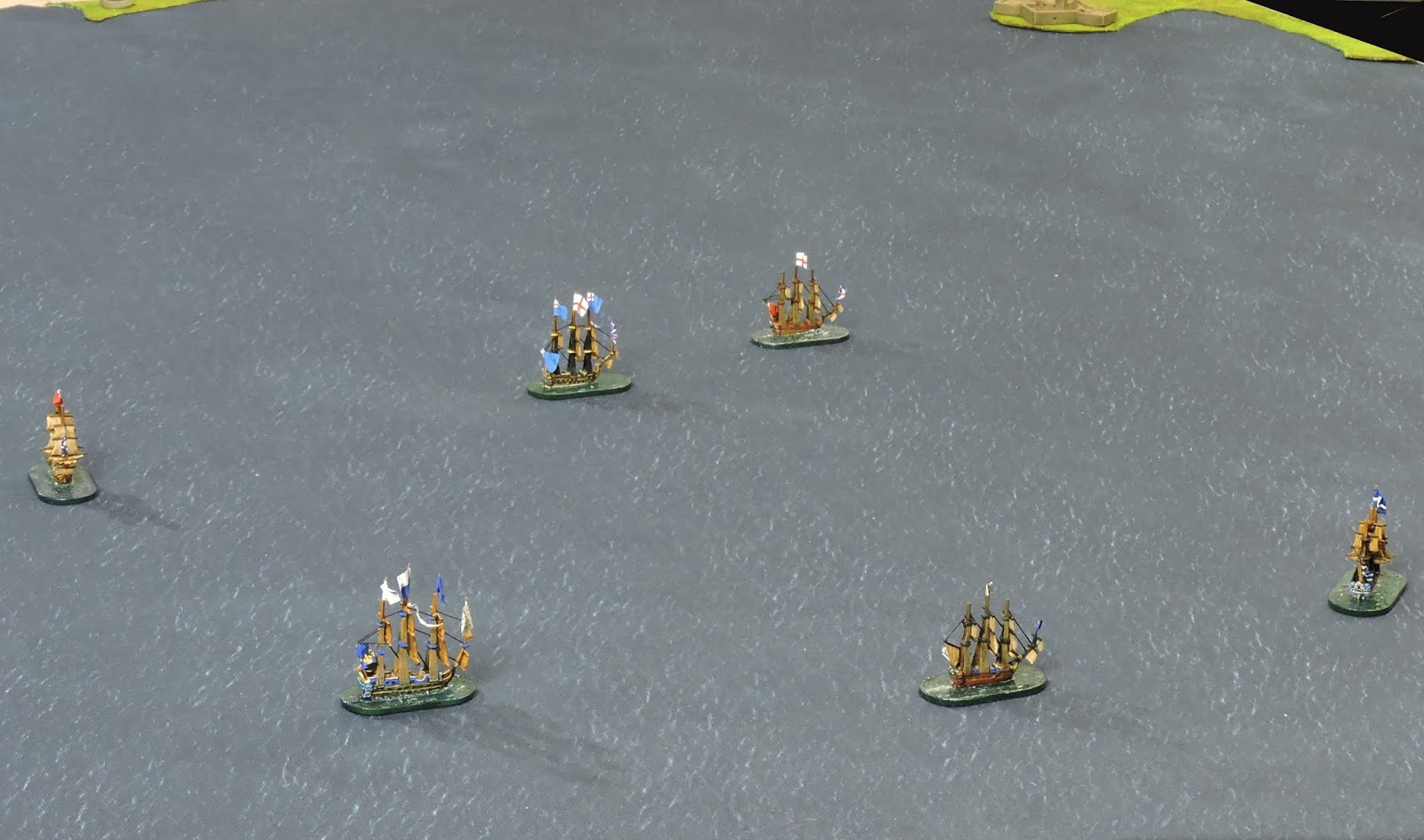 squadron has been watched by various English sentinels from leaving Brest on April 2nd. Now passing south of the Isle of Wight, it has been intercepted by Sir Robert Barre’s squadron heading out of the Solent on a course to intercept.