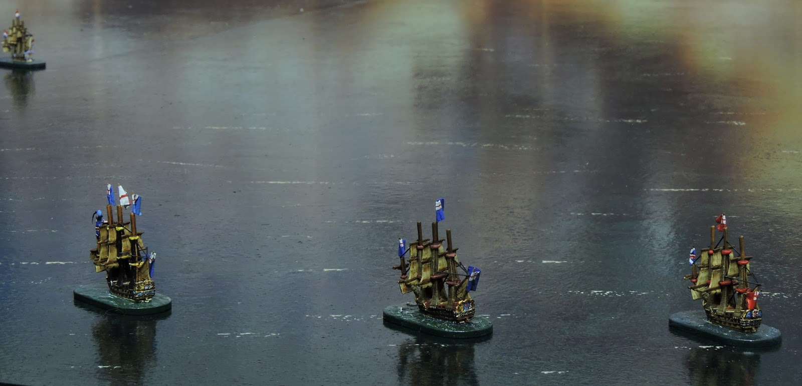 Scenario number 1 entitled 'King Louis's ships' takes place off the port of Dunkirk in the opening days of the Franco-Dutch war of 1672 and sees Peter's Admiral - Tocht, charged with penning the French in their home port. Big ships, big guns and the most unexpected ending which I think, by the look on the faces of Dave and Colin, left them somewhat 'clamped' as they say in these parts. An excellent start to our day of nautical nonsense.